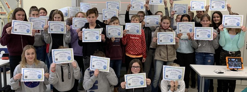 Schnell war allen klar: Programmieren ist anspruchsvoller als Spielen, aber es macht trotzdem mindestens genauso viel Spaß. Am Ende konnten alle Teilnehmer stolz eine Urkunde zur erfolgreich absolvierten ersten „Hour of Code“ in den Händen halten.