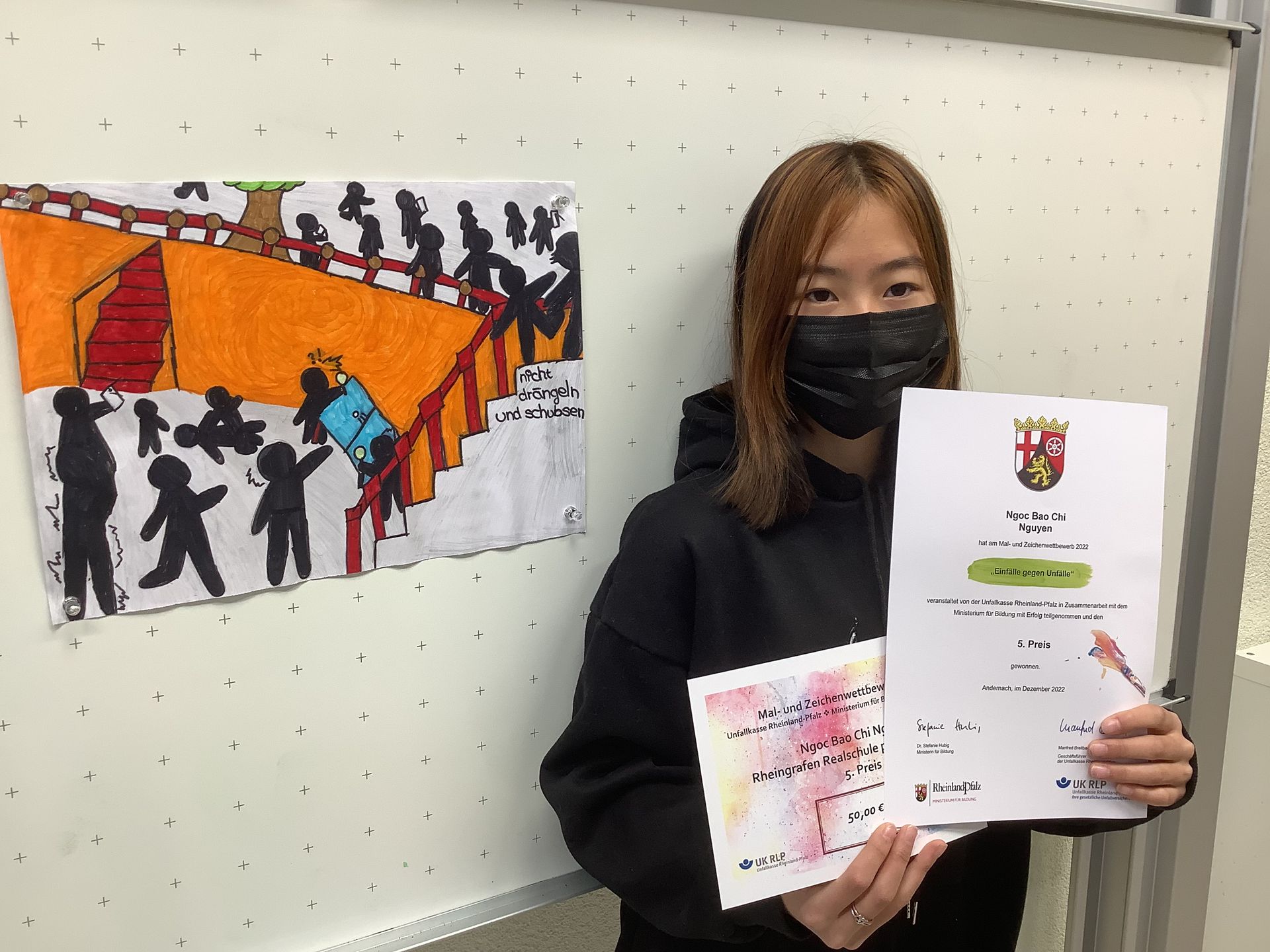 Auch ihre Mitschülerinnen und Mitschüler gingen nicht leer aus. Alle bekamen eine kleine Tasche mit Buntstiften als Anerkennung von der Unfallkasse RLP.